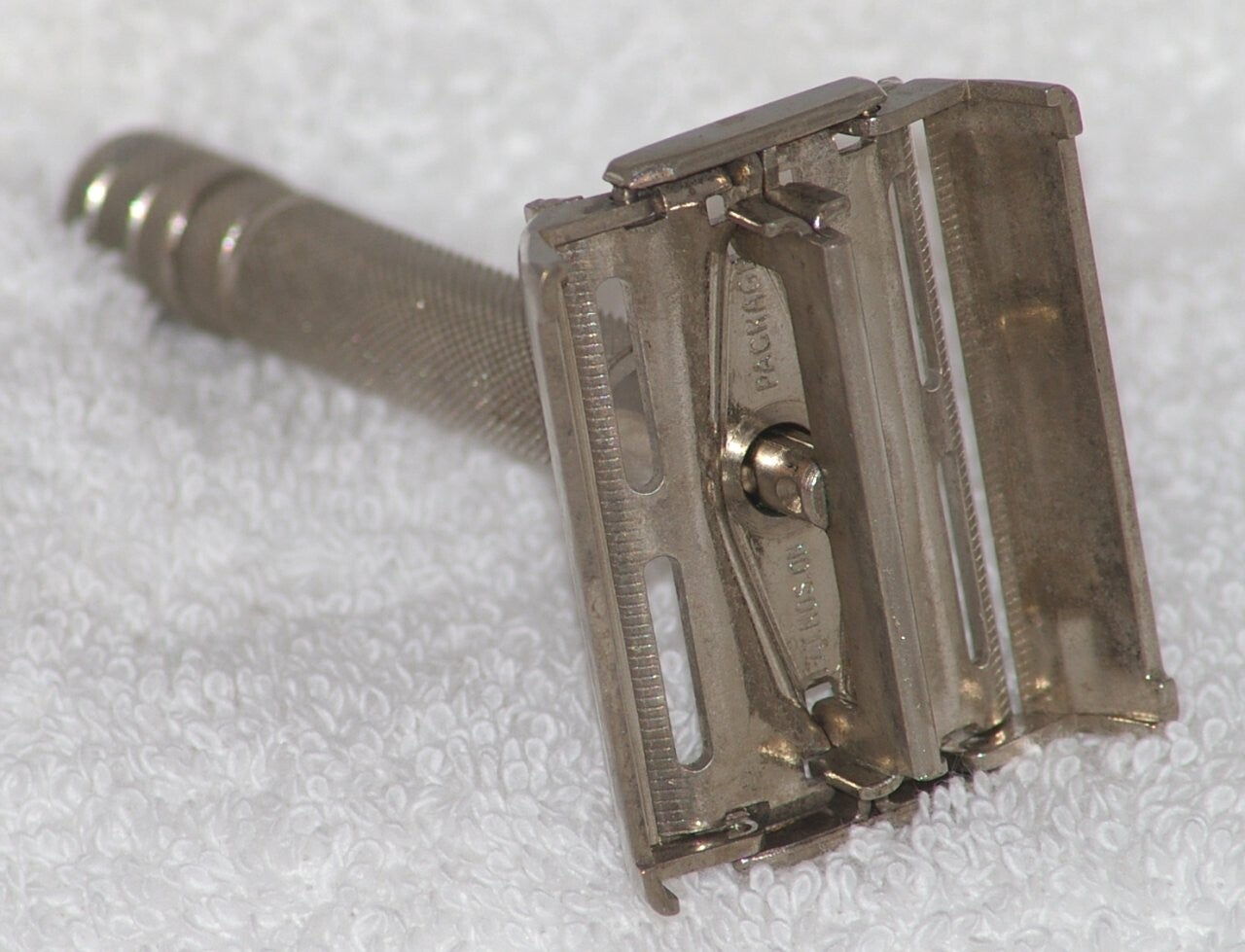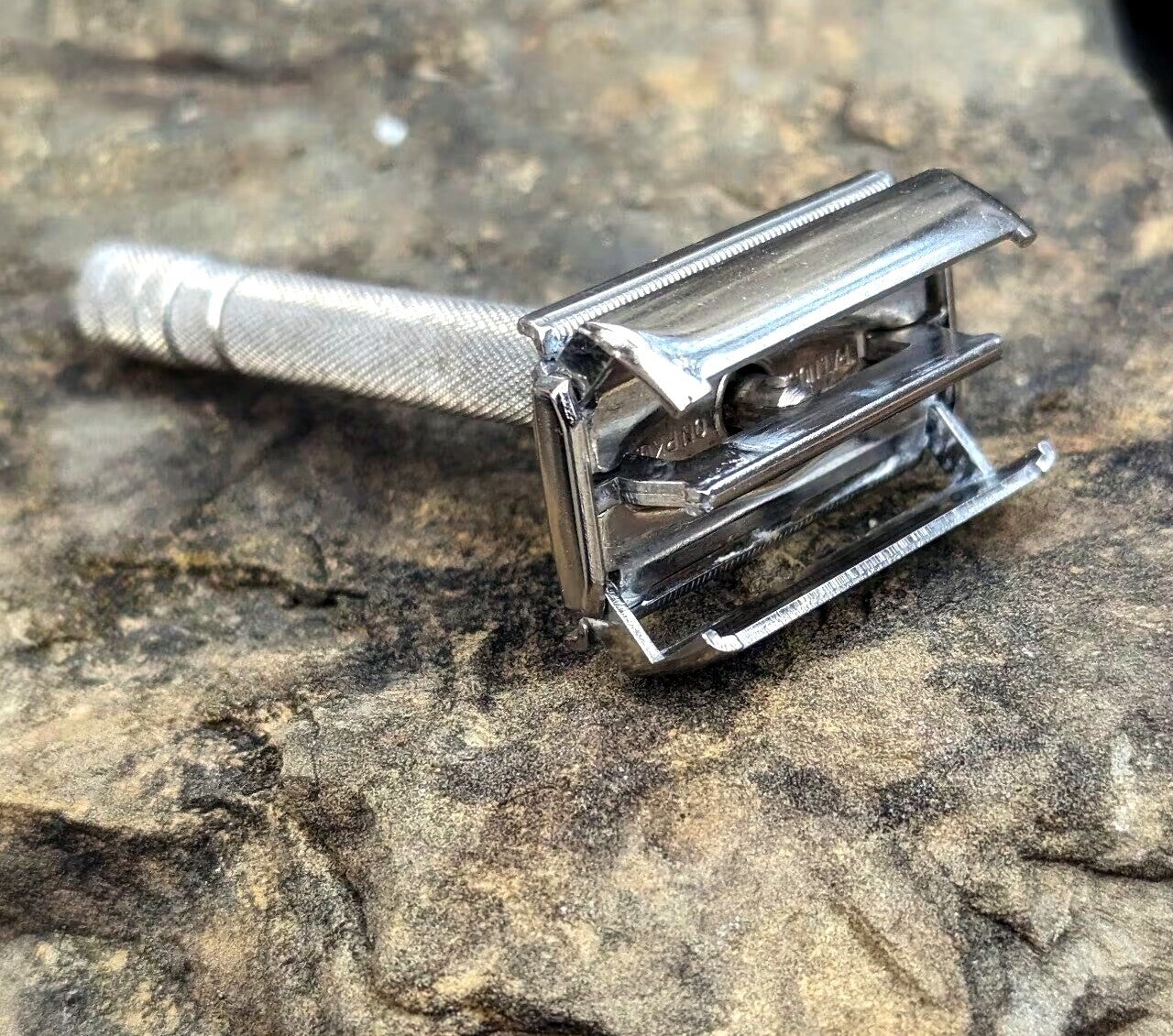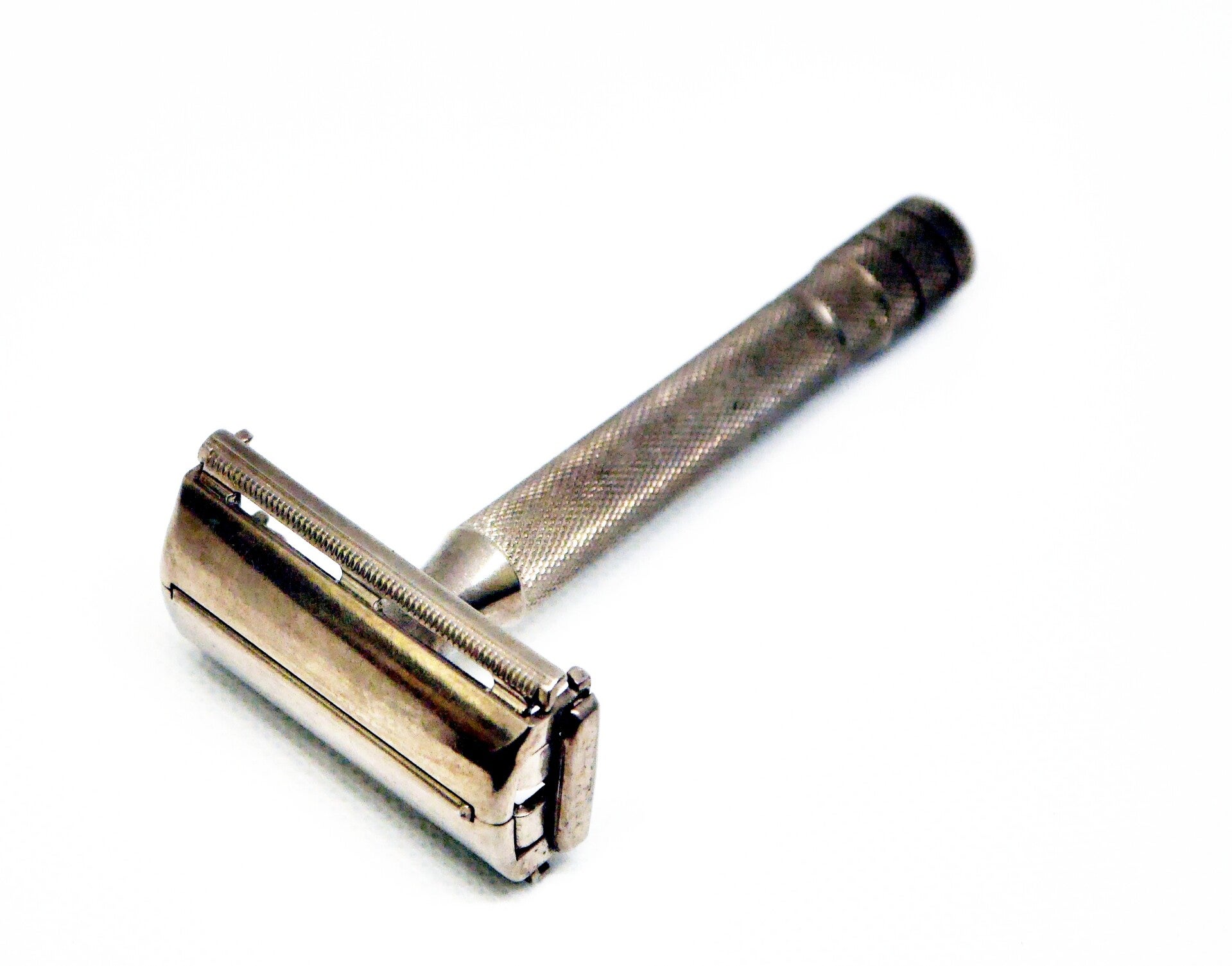 Based on a 1950 vintage twist to open (TTO) razor, our "super speedy" Repli Speed razor is beautifully crafted to match the 1950 original. Made of solid brass, Repli Speed is finished in gleeming nickel, just like the razor on which it is based. Repli Speed has the same head geometry, and handle design.